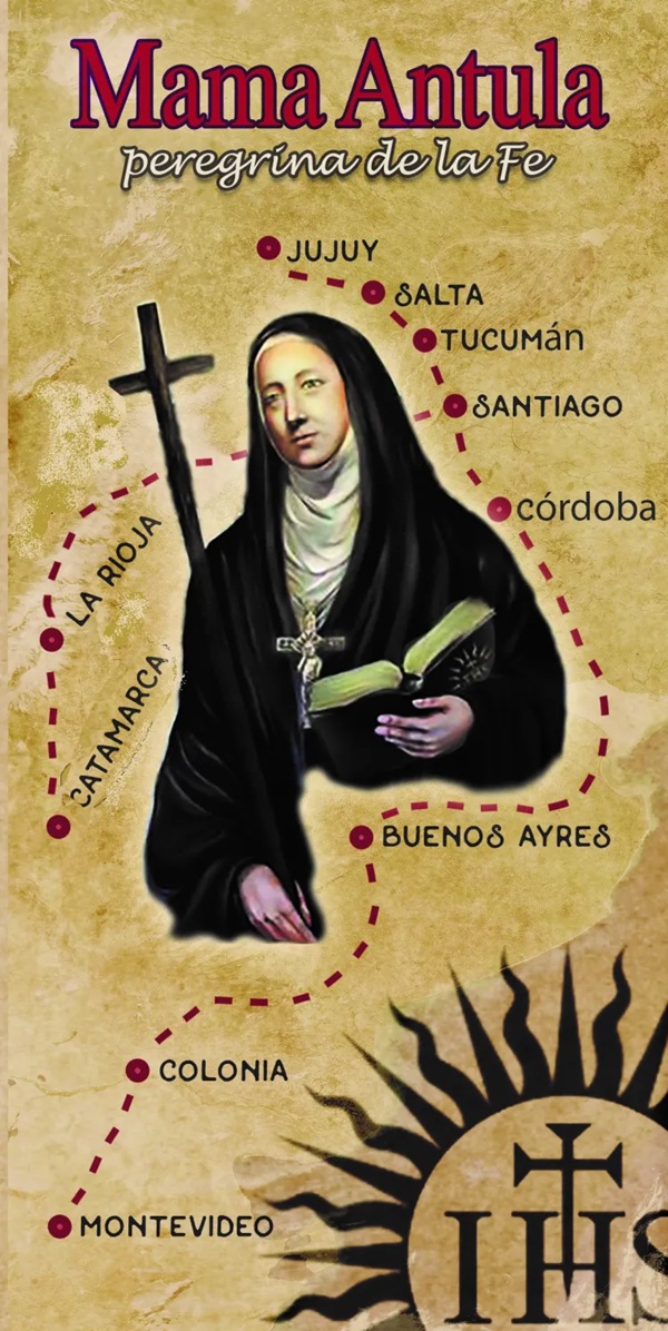 María Antonia de Paz y Figueroa nació en Santiago del Estero en 1730. A los 15 años empezó a acompañar a los Jesuitas como Beata de la Compañía de Jesúsen la tarea de evangelización de los pueblos originarios santiagueños, enseñándoles la Palabra de Dios, a leer y a escribir, y a perfeccionar técnicas de ganadería y agricultura. Mama Antula hablaba quichua. Y fueron los indígenas quienes la bautizaron Mama Antula. Cuando los jesuitas fueron expulsados de América en 1767, en una experiencia de epifanía en la celda capilla de San Francisco Solano y a la edad de 38 años, Mama Antula recibió la misión de su vida: continuar con la práctica de los Ejercicios Espirituales que realizaban los jesuitas, para la salvación de las almas.