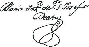 - Primeramente encomiendo mi alma a Dios Nuestro Señor, pues la creó de la nada y la redimió con su preciosísima Sangre, y mi cuerpo a la tierra de que fue formado; el cuál amortajado (p.363) con el propio traje que públicamente visto de Beata profesa, mando sea enterrado en el campo santo de la Iglesia Parroquial de Nuestra Señora de la Piedad, de esta ciudad, con entierro menor, rezado, y pido encarecidamente por amor de Dios a los señores curas respectivos, ejerciten esta obra de caridad, con el cadáver de una indigna pecadora, en atención a mi notoria pobreza. A consecuencia, pido que desde esta Casa de Ejercicios, donde me hallo enferma, y donde es regular fallezca, se conduzca mi cadáver en una hora silenciosa, por cuatro peones de los que actualmente están trabajando en la obra. Así lo declaro para que conste.