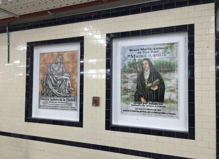 El dúo de mayólicas en honor a Mama Antula fue colocado en la Estación Sáenz Peña de la línea A de Subterráneos días después de su beatificación, en septiembre de 2016, en ocasión de las fiestas patronales de la Basílica de la Piedad. Por eso a la imagen de María Antonia de Paz y Figueroa la acompaña una imagen de La Piedad, ambas realizadas por la artista plástica Silvana Sica.