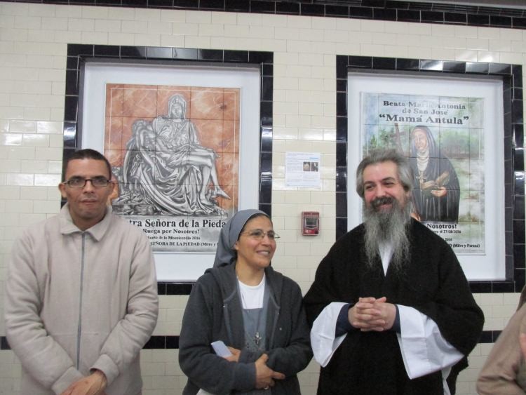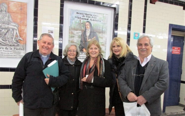 El Padre Raúl Laurencena -párroco de La Piedad en donde se encuentra el Sepulcro Histórico Nacional con las reliquias de Mama Antula- bendijo las mayólicas en presencia de devotos y cientos de viajeros que cada día pasan por esta Estación de Subte.