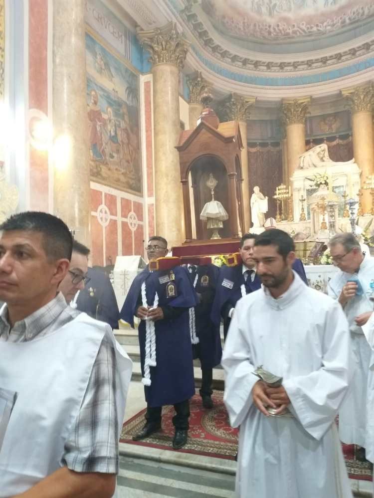 Procesión de reliquias de Mama Antula y veneración al Manuelito, luego de la Misa en la Basílica de la Piedad.